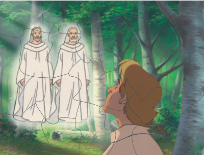 Review the story of Joseph Smith's First Vision with questions on the back of each puzzle piece as you complete the puzzle with your family.